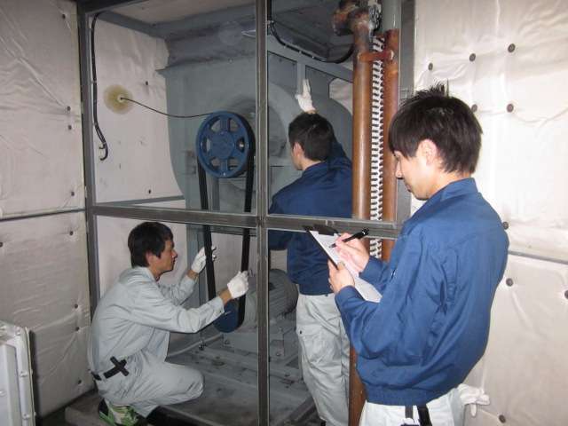 例えば、大型空調機や業務用エアコンのメンテナンス作業では、汚れの有無や各部品の消耗具合を確認し、清掃や部品交換の提案をします。